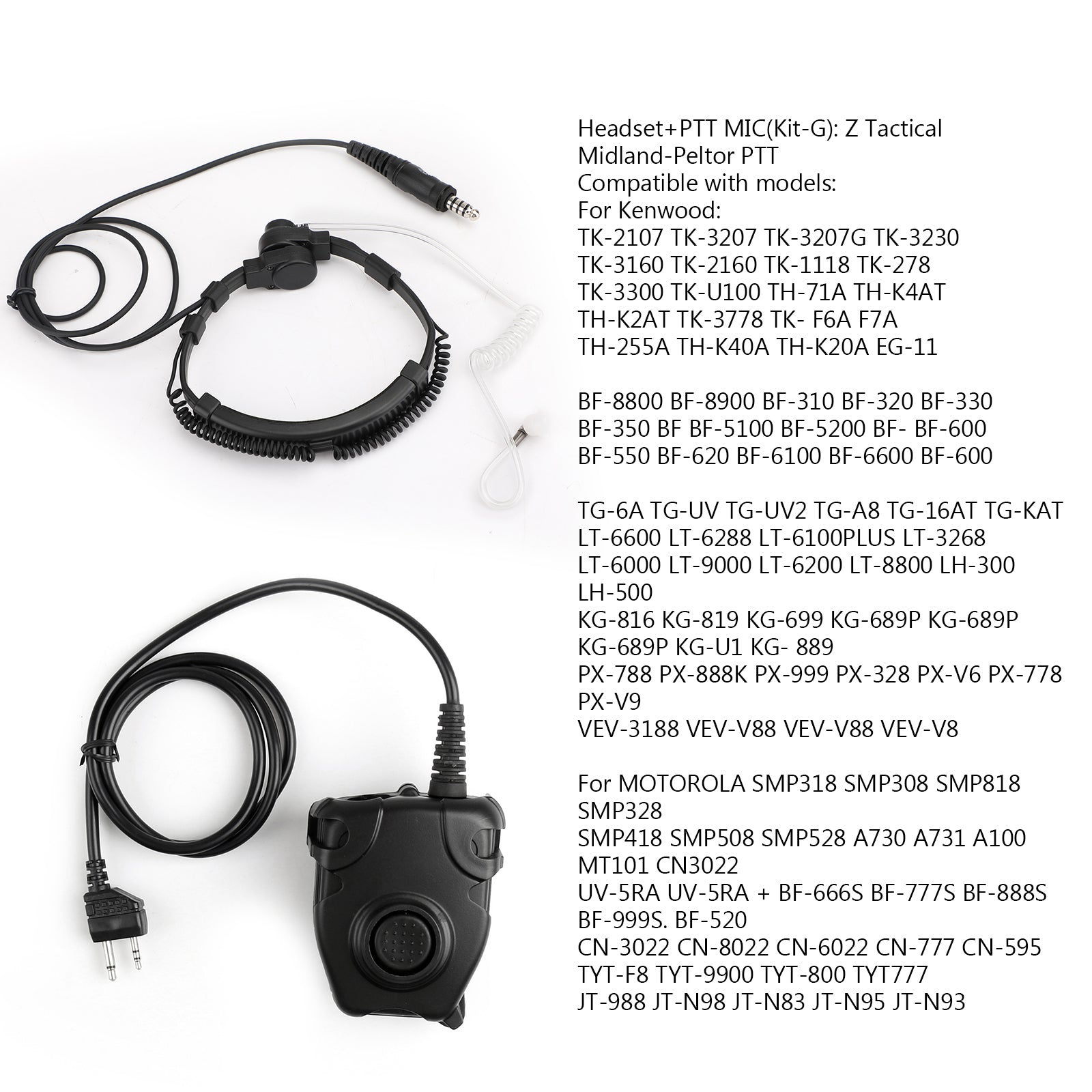 You can choose one of the PTT(From Kit-A to Kit-K)below to make up a Headset+PTT Kit: