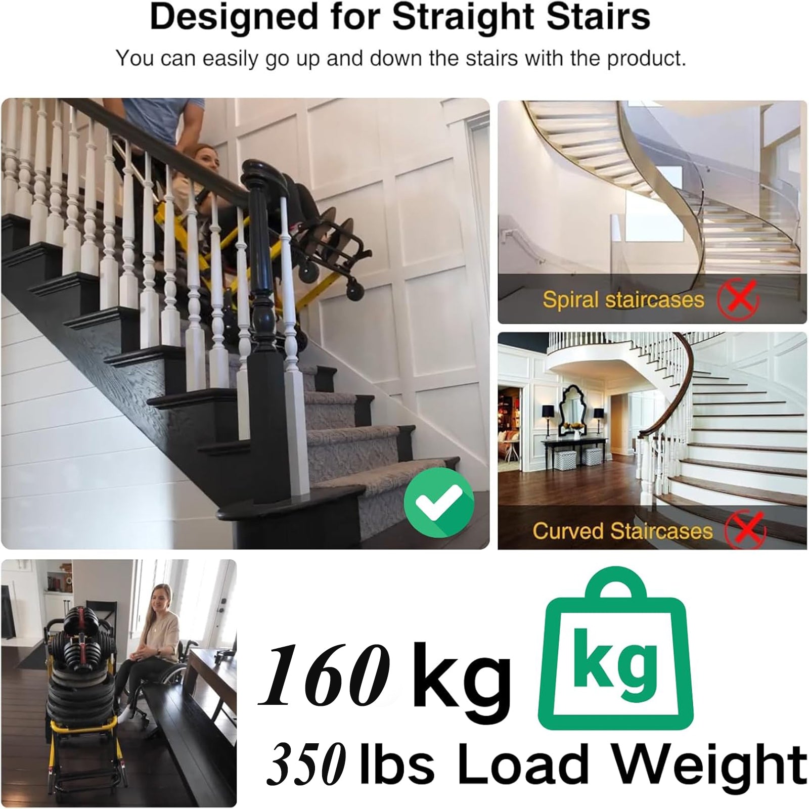 Straight stairs with slopes under 50° and step length ≥ 80cm.
