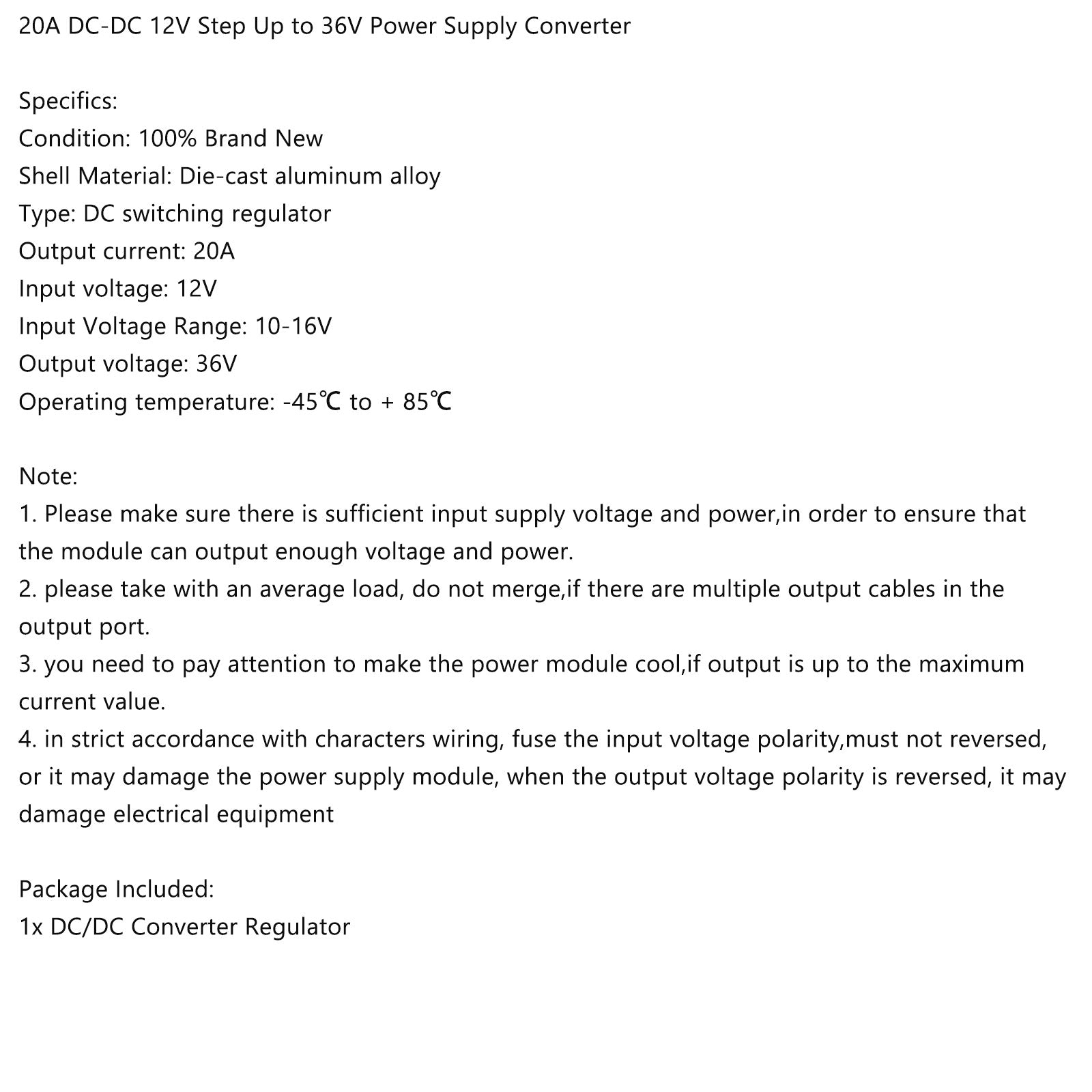 DC-DC 12V Step Up to 36V 20A Car Power Supply Converter Regulator Waterproof