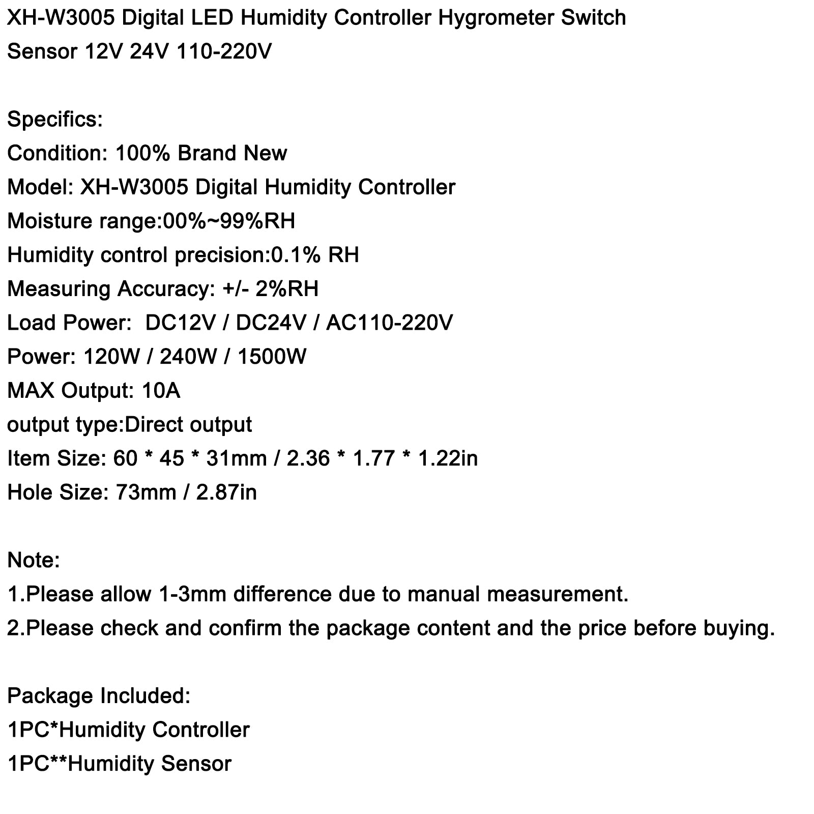 XH-W3005 Digital LED Humidity Controller Hygrometer Switch Sensor 12V 24V 110-220V