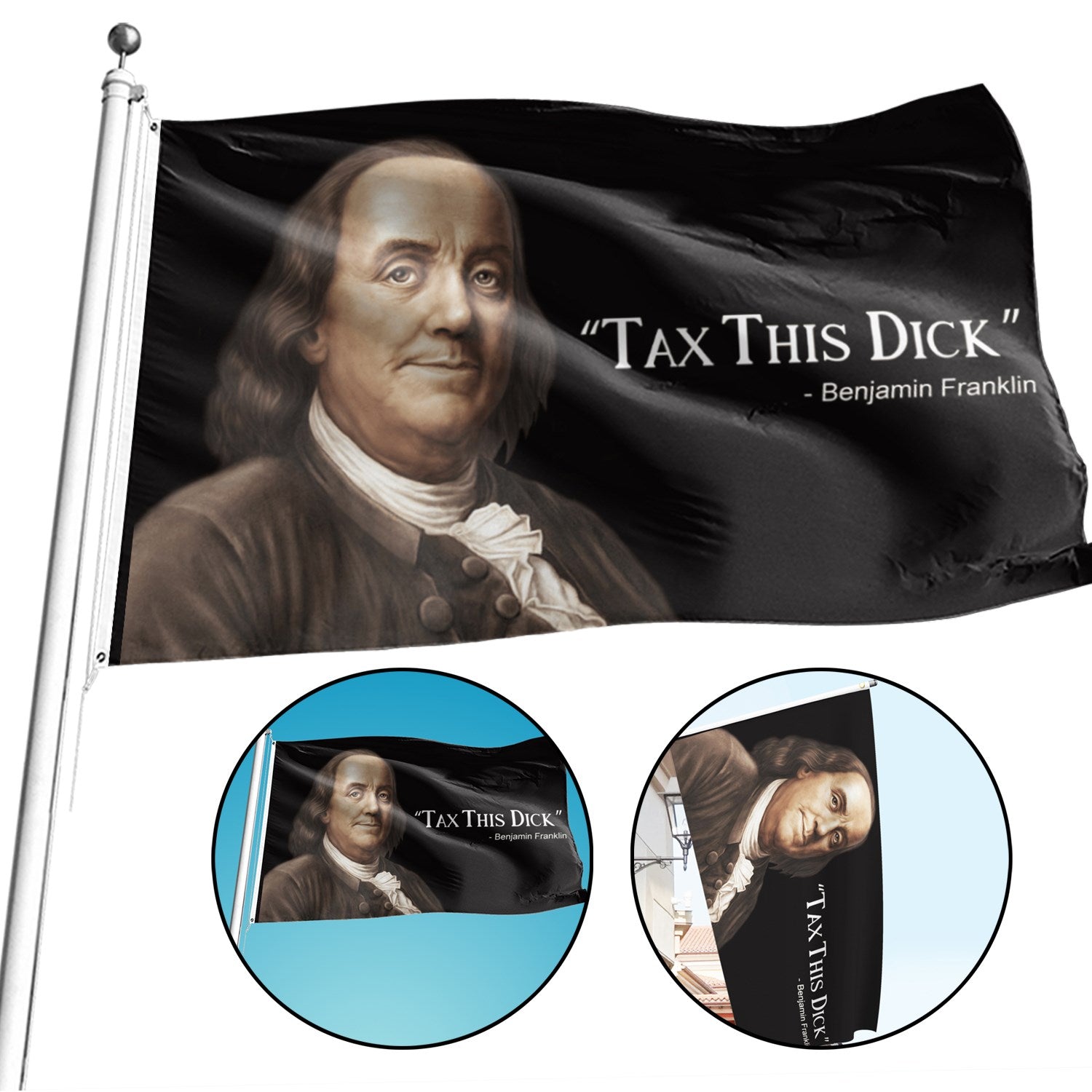 Enjamin Franklin Tax This Dick Funny Quote Flag 3x5ft Banner College
