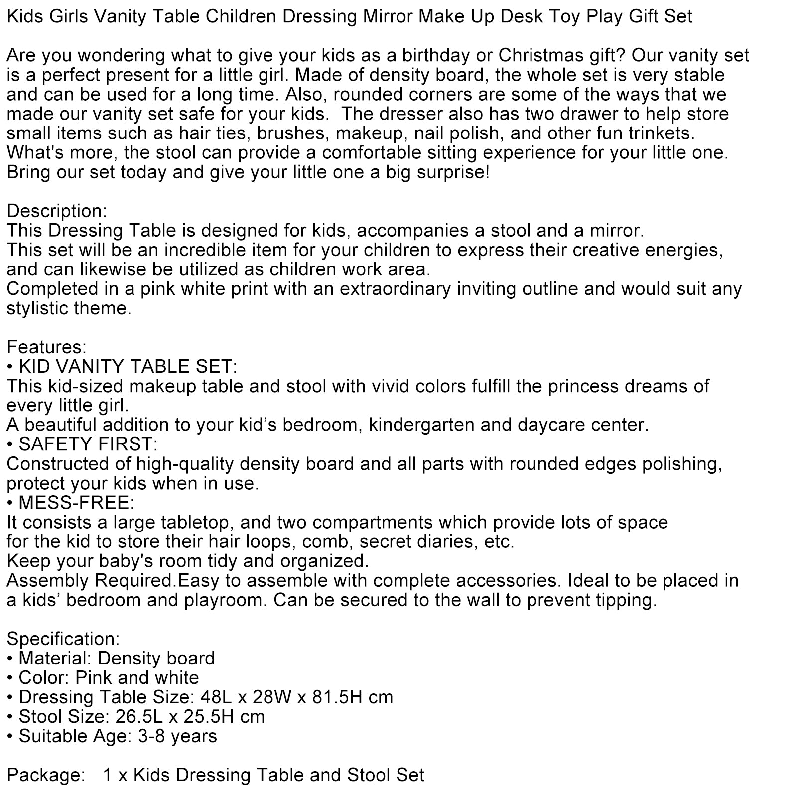 Our beautiful vanity set is the perfect gift for little girls! Made with high-quality materials and designed with safety in mind. 🎁
