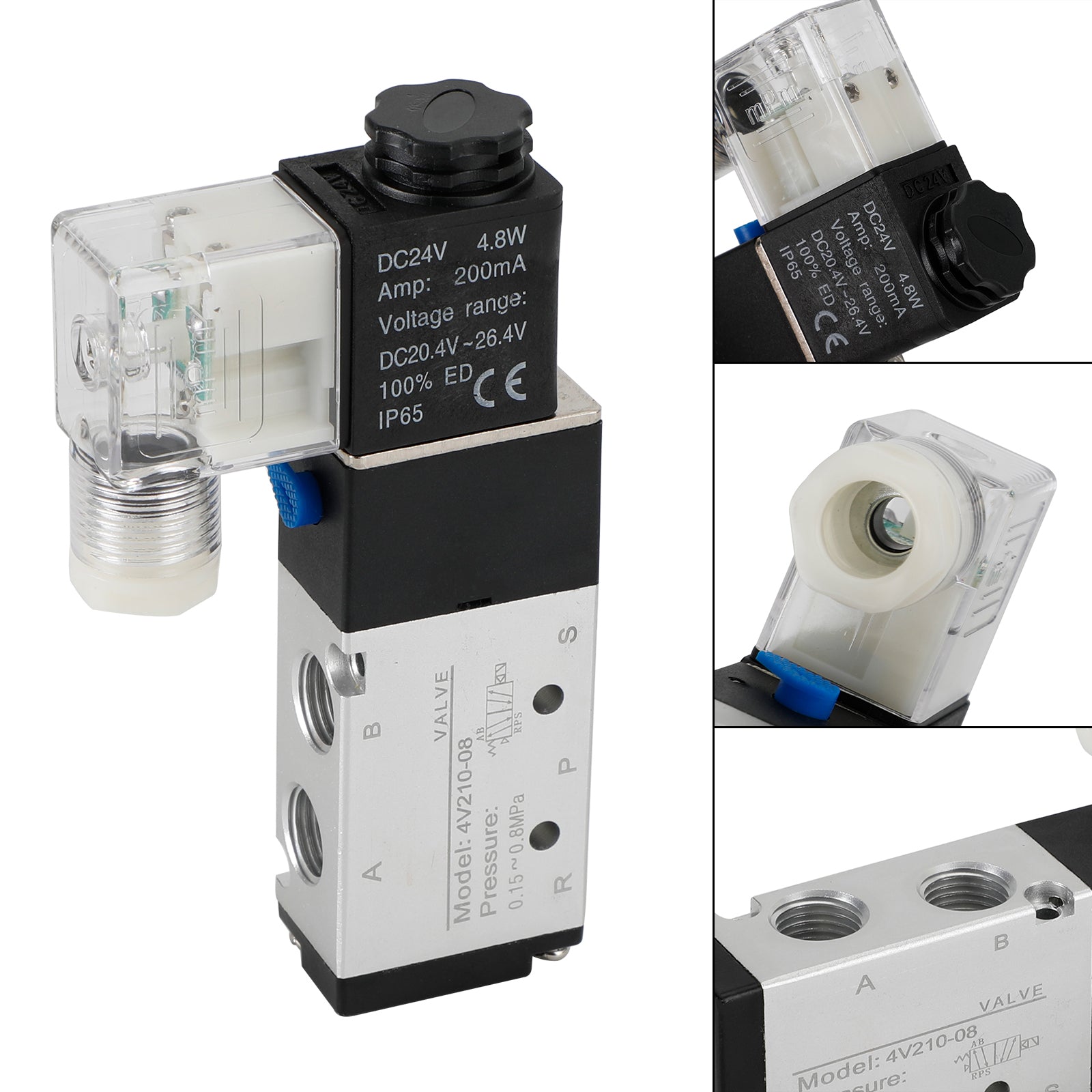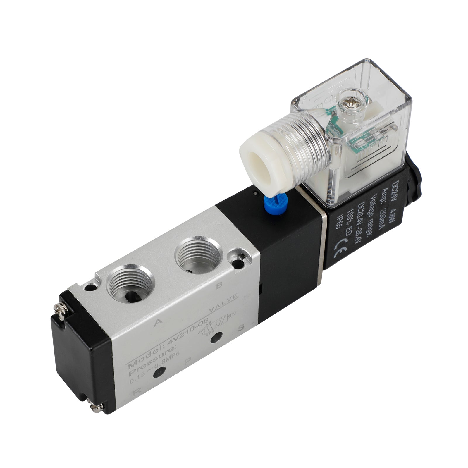 4V210-08 5 Way 2 Position Dc 24V Pneumatic Electric Solenoid Air Valve