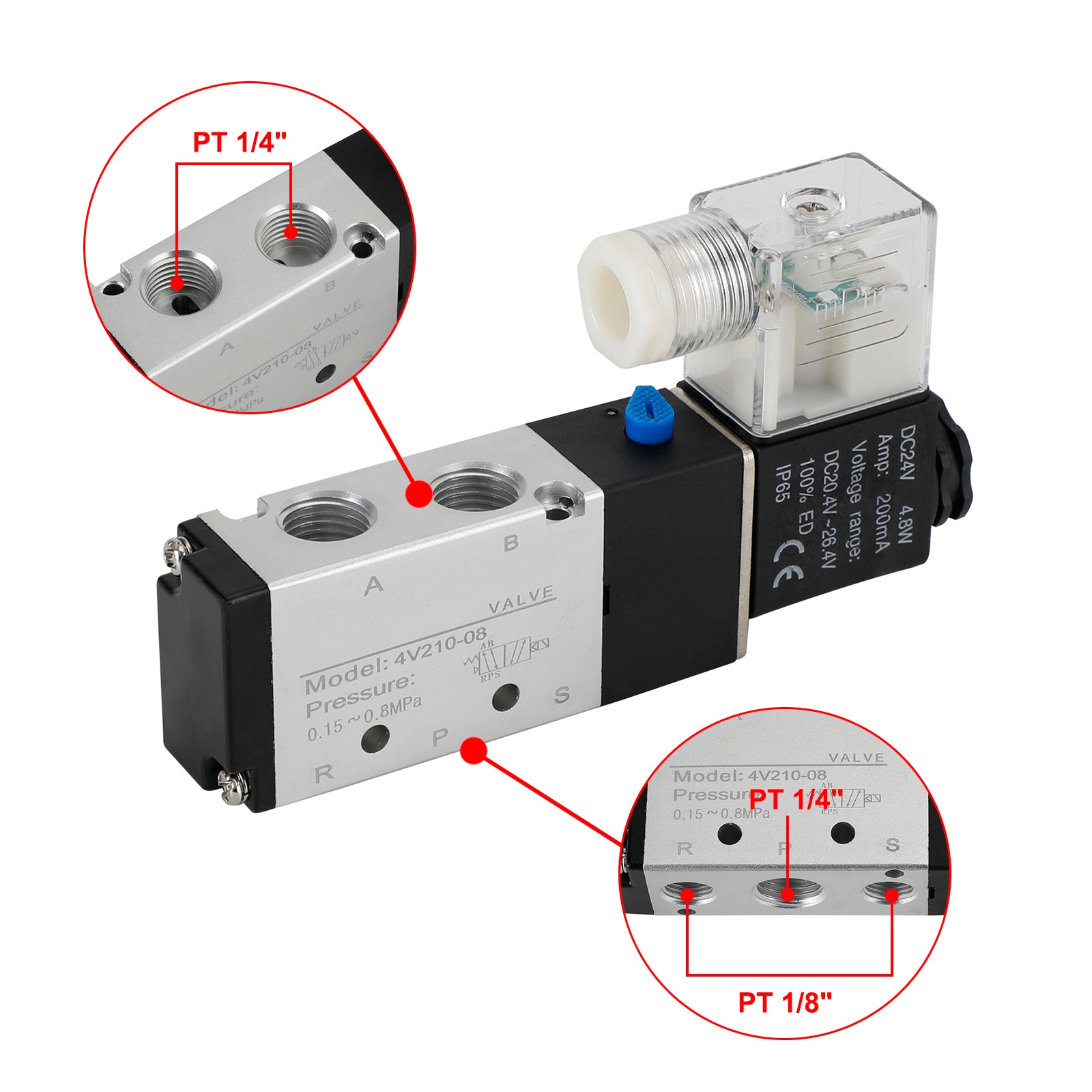 Pneumatic Electric Solenoid Air Valve 4V210-08 Dc24V 2 Position 5 Way PT 1/4"